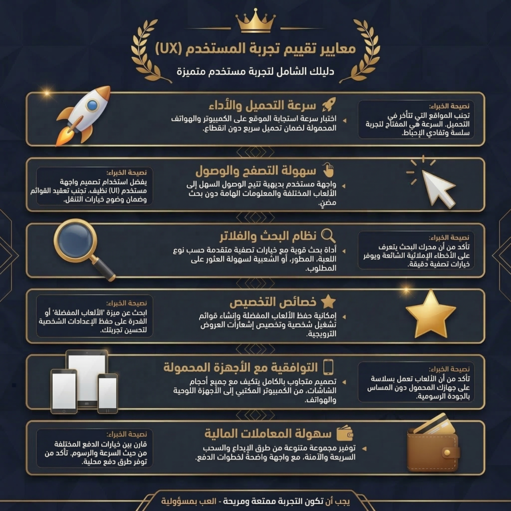 أراقب سرعة تحميل الصفحات، واستقرار الجلسات أثناء اللعب، وهل تحدث انقطاعات مزعجة خاصة في ألعاب الكازينو المباشر.
