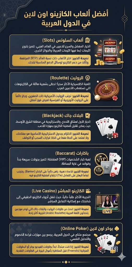 ما أفضل ألعاب الكازينو اون لاين للاعب العربي المبتدئ؟